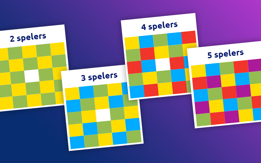 - Elke speler kiest een kleur en krijgt 25 fiches. Met meer dan 5 spelers vorm je teams.